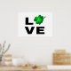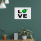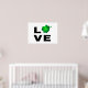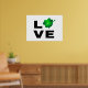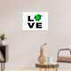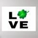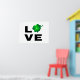 Text-Liebe aus Buchstaben und einem grünen Bild von vierblättrigem Kleeblatt. Lass Liebe und Glück sei bei dir. Thema des Patrischen Tages. Wall Art Poster