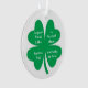 Die Vorderseite dieses besten Freundes-Ornament hat einen vierblättriges Kleeblatt vor einem weißen Hintergrund und das Sprichwort: Ein guter Freund ist wie ein vierblättriges Kleeblatt - schwer zu finden und glücklich zu haben. Die Rückseite des Ornaments ist grün - Sie können Design bearbeiten, um Ihren Namen und den Namen Ihres Freundes hinzuzufügen.