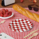 Viereck rotes, weißes Retro-Quadrat Pappteller