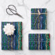 Geschenkverpackungspapier Set aus 3 Blättern gedruckt mit Vierteiliger Harmonie Transluzente Alternierende Formen oval geformte Drehungen, Drehungen und Kurven abstrakte geometrische Kunst Design gemusterte Original-Kunstvorlage durch TheFabricSeal Print on Demand Shop Zazzle.com #ZazzleMade https://www.zazzle.com/store/thefabricseal TheFabricSeal Original ©️. Unser schön bedrucktes Packpapier kommt in einem Set von drei bequem vorgeschnittenen Blättern. Ideal für Geschenkpackungen, Gastgeschenke oder um Ihr nächstes kreatives Heimwerkerprojekt wirklich herausragend zu machen! Moderne, zeitgenössische, abstrakte transparente, durchsichtige, wellenförmige, geometrische Digitalgrafik, die künstlerisch für Ihre Zuhause und Wohnaccessoires konzipiert und gedruckt wird, Wohngestaltung, Modeerklärungen, modernes elektronisches Accessoire und Geschenktöne. Schönes, ausgewogenes, harmonisches Farbschema mit Kornblumen, Yinmin Oregon Mas blau, blau grün, Picton blau, cremig weiß, Alizarin rot, Granny Smith Apfelgrün und Leguana Eidechsengrün Farbpalette auf einem schwarzen Eichenjetter unter dem Hintergrund.
