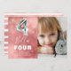 Vierter Geburtstag Silver Ballon | Rosa Foto Party Einladung
