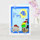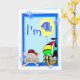 4. Geburtstagskarte mit lustigen Piraten und Schiff, Clown, Pinguin und Ballons, auf blauem Hintergrund. Personalisieren Sie dieses Design einfach, indem Sie den Text hinzufügen oder ändern.