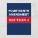 Vierzehnter Änderungsantrag 3. Es gibt eine horizontale und vertikale Fassung mit dem Text des Änderungsantrags auf der Rückseite und eine vertikale Fassung mit dem Text des Änderungsantrags auf der Vorderseite der Karte, alle in der gleichen Sammlung. Erinnern Sie Ihre Kongressabgeordneten, einschließlich derjenigen, die bei der Planung mitgeholfen, aber versagt haben, alle Stimmen Ihres Staat durch Missbrauch der Uni bei den Wahlen im Jahr 2020 wegzuwerfen, und Ihre Freunde und Nachbarn, dass Aufständische von der Ausübung öffentlicher Ämter ausgeschlossen sind. Auf der Kartenrückseite steht der Wortlaut von Abschnitt 3 der 14. Änderung, in dem es heißt: "Niemand darf Senator oder Kongressabgeordneter oder Wahlberechtigter des Präsidenten und Vizepräsidenten sein oder ein ziviles oder militärisches Amt unter den Staaten der Vereinten Nationen oder unter einem Staat innehaben, der zuvor einen Eid geleistet hat, als Kongressmitglied, als Offizier der Staaten oder als Mitglied eines Staat Die Insel, oder als Führungskraft oder Justizbeamter eines Staat, um die Verfassung der Vereinigten Staaten zu unterstützen, soll verlobt in Aufstand oder Rebellion gegen das gleiche haben, oder den Feinden ihrer Hilfe oder Trost gegeben haben. Aber der Kongress kann diese Behinderung durch eine Abstimmung von zwei Dritteln jedes Hauses beseitigen." Der rot unterstrichene Text lautet, wenn er zusammengestellt wird: "Keine Person darf ein ziviles oder militärisches Amt unter den Staaten innehaben, die, nachdem sie zuvor als Offizier der Vereinigten Staaten einen Eid zur Unterstützung der Verfassung der Vereinigten Staaten geleistet hat, an Aufständen oder Rebellion gegen dasselbe verlobt haben." Erinnern Sie die Menschen daran, dass die Verantwortlichen für den Aufstand, insbesondere sein Königin Donald Trump, zur Rechenschaft gezogen und aufgrund des vierzehnten Zusatzartikels zur Verfassung der Vereinten Staaten vom öffentlichen Amt ausgeschlossen werden müssen. Trump hielt das Amt des Präsidenten, war für das Militär verantwortlich, und am Tag seiner Amtseinführung schwor er vor uns allen diesen Eid: "Ich schwöre feierlich, dass ich das Amt des Präsidenten der Vereinten Staaten treu vollstrecken werde, und werde nach bestem Wissen und Gewissen die Verfassung der Vereinigten Staaten bewahren, schützen und verteidigen." Designbeschreibung: Über den gesamten Raum hinweg ein blauer Hintergrund. In der oberen Hälfte die Worte: "Vierzehnter Änderungsantrag." Über der unteren Hälfte, ein breiter Streifen in patriotischem Rot, an der Oberseite und unten in Weiß, und in der Mitte dieses Streifen die Worte "Abschnitt 3" in einem All-Caps weißen Serif-Schriftart. Die Rückseite ist in zwei Hälften geteilt. Die rechte Hälfte enthält den Text des vierzehnten Änderungsantrags, Abschnitt 3, wobei die Teile wie oben beschrieben unterstrichen werden. Die Rechte hat Platz für die Adresse und Briefmarke.