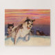 Vierzigerjahre Husky-Schlittenhunde, die ihre Puzzle