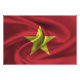 Foto-Druck mit der Flagge von Vietnam in gewellter Stoff-Stil-Design. Dieses Design zeichnet sich durch die vietnamesischen Fahnen Farben und Design mit einem schönen winkenden Material texturierten Effekt. Dieses Flaggendesign ist eine großartige Möglichkeit, Ihnen zu zeigen, dass Sie stolz sind, aus Vietnam zu sein.