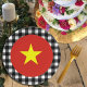 Teller: Rustikale Vietnam Party Teller mit vietnamesischer Flagge umgeben von schwarz-weiß Büffel karierten Muster - Liebe mein Land, festliche Dekoration, nationale Patrioten / Sportfans