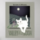 Weine, Mondschein und eine weiße Katzenposter-Kunst. Moderne Jugendstil- und Art-Deco-Kunst beeinflussten die Posterkunst-Grafik. Eine weiße Katze sitzt auf einem Fenster und blickt auf einen Weingarten und den Mond darüber. Im Herzen des kalifornischen Weinlandes liegt Sonoma, dessen Name, auch bekannt als "Tal des Mondes", ein Abstammungswort eines indigenen Wortes "Viele Monde" und "Noma" aus dem Wort für Stadt ist. Sonoma gilt als die erste Stadt im Weinland, eine reizvolle und pastorale Ruhepause, lässig und unprätentiös, nur eine Autostunde von San Francisco entfernt. Originale Kunst, von der Künstlerin Margaret Loftin Whiting
