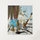 Norwegische Waldkatze sitzt an einem Baum mit blauem Drachen und sitzt in einem Flaschenhelm. Schnee um sie herum, Schwert und viking Axt mit ihnen.