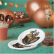 Ein vikinig Krieger bereit zum Kampf mit einer Axt und einem Schild. Dieser Entwurf schaut wirklich effektiv auf diesem PapierTeller