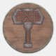 Ein Hammer illustriertes Überschön verwittertes hölzernes Wikinger-Schild.