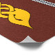 In dieser originalen Illustration von Richard H. Fay wird ein Schwert aus der Wikingerzeit (frühmittelalterlich) mit einem Trilobatpommel dargestellt, das auf einer im Britischen Museum untergebrachten, zwischen zwei Plastikbändern auf der Grundlage eines Designs aus einer Viking Age Steinskulptur auf der Isle of Man gezeigt wird.