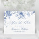Elegante Vintage Blauer Französischer Garten Blumenhochzeit Speichern Sie das Datum Postkarte.