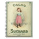 Antikes Kakao-Sucard - Schokoladenzucker aus Frankreich Sie liebten sicherlich ihre Schokolade im Viktorianischen Frankreich. Cacao Sucard bedeutet Schokoladenzucker. Das antike kleine Mädchen wirft Ihnen einen Kuss, einen Schokoladenkuss. Das kleine Vintage Mädchen Lieben Schokolade. Das altmodische Bild wurde ursprünglich auf einer Schokoladenzange aus dem Jahr 1900 gedruckt - Vintage Schokoladenwerbung. Der Hintergrund ist in antiken Grün und antiken Weiß gehalten, während das kleine Mädchen stehend ist und Ihnen einen Kuss gibt. Das altmodische Bild ist ein kleines braunes Haarbild, das ihre Schachtel Pralinen trägt. Sie trägt ein niedliches kleines blaues und rosa Kleid. Dies ist die perfekte Vintage antike Werbekunst für Schokoladenliebhaber.