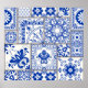 Nahtlose Fliese mit Viktorianischen Motiven. Majolika Keramik Fliesen, blau-weiß Azulejo, original portugiesische und spanische Dekoration. Vintag Citrus Burst - Aquarellscheiben und mehr! Citrus Burst - Aquarellfarben Scheiben der Freude! Fliesen, portugiesisch, Damast, portugal, arabesque, Muster, blau, quadratisch, Vintag, geometrisch, azulejo, Illustration, marokkanisch, nahtlos, viktorianisch, lisbon, mosaik, abstrakt, Hintergrund