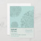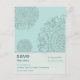 Vintag und modern treffen sich, um einen zeitgenössischen Look auf dieser schönen Postkarte zu schaffen. Ein klassisches Viktorianisches Ornament wird als ein sich wiederholendes grafisches Element vor einem weichen Aquahintergrund verwendet. Ihre individuell anpassbaren Informationen werden gegen ein leichteres Panel Set, um einen unvergesslichen rett-the-date-Magneten zu schaffen. Der Rücken wird für Ihre persönliche Nachricht und Adressinformationen leer verlassen. In meinem Shop finden Sie passende Karten, Porto und Favoriten. Erhältlich in alternativen Farben.