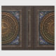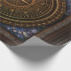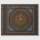 Eine gerahmte Barockuhr aus Holz mit Blüten, Blume und Pflanze in Blau, Grün und Rosa. Der Rahmen ist dunkelbraun. Die Uhr ist in der Mitte des Rahmens, hat ein Metall-Look in Messing und ist sehr detailliert und dekorativ mit goldenen Zahlen.