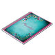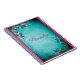 Ein viktorianisches, offenes Buch mit schönem Scrolldesign und mit rosa und lila Rose vor einem aquamarinen Hintergrund mit einem leichten Texturlook. Sehr hübsch.