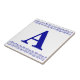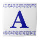 Viktorianische Buchstabenkachel - Blau auf Weiß mit einem Bildlaufrahmen eines Druckers