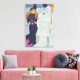 Diese Abbildung zeigt eine stilvoll gekleidete Frau, die neben einem großen, grob geformten Schneemann stehend ist. Die Frau ist in einem eleganten, Viktorianischen, schwarzen Kleid mit roten Falten und einem Pelzmuff geschmückt, und ihr goldenes Haar ist oben mit einem modischen Hut geschliffen. Der Schneemann hat einen fröhlichen, aber leicht müden Ausdruck: er trägt einen oberen Hut, hält einen Broomstick und raucht eine Pfeife. Im Hintergrund befindet sich eine verschneite Landschaft mit kargen Bäumen unter einem dunkelblauen Himmel. Die Szene hat eine künstlerische, skurrile und etwas surreale Qualität.