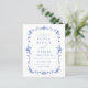 Lassen Sie Ihre Gäste mit unserem Viktorianischen Vintagen Blauen Blumenzitat in eine Ära der Eleganz und Romantik eintauchen. Inspiriert von der Opulenz der Viktorianischen Zeit und mit feinen französischen Blautönen geschmückt, strahlt diese Einladung zeitlose Eleganz aus. Das aufwändige Blumendesign und die Vintag inspiriert Typografie schaffen mit viel Liebe zum Detail ein Gefühl von Charme und Raffinesse der alten Welt. Jede Einladung ist ein Kunstwerk, das das Wesen einer vergangen Zeit einfängt und gleichzeitig die Freude an Ihrem besonderen Tag feiert. Unsere hochqualitative Einladung misst [Dimensionen] und sorgt für Langlebigkeit und Eleganz und setzt den perfekten Ton für Ihre Hochzeitsfeier. Ob Sie eine große Affäre oder eine intime Ansammlung planen, unsere Viktorianische Vintage Blue Floral Wedding Einladung lädt Ihre Gäste ein, die Gewerkschaft der Liebe auf die bezauberndste Weise zu erleben. Erleben Sie die Schönheit und Romantik einer vergangenen Zeit mit unserer exquisiten Einladung und schaffen Sie Erinnerungen, die ein Leben lang halten werden.