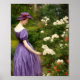 Dies ist ein von der KI generiertes Bild einer Viktorianischen Frau in einem Garten.