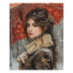 Eine digitale Darstellung eines hochrealistischen Gemäldes einer Frau in einem Viktorianischen Kleid im Freien bei schneebedecktem Wetter.