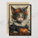 Laden Sie Ihre Freunde zu einer gruseligen Halloween-Themenparty mit dieser Postkarte ein! Das Mädchen aus der Viktorianischen Ära sieht so unschuldig aus, bis man die Fledermaustiara und die gruseligen Ohren bemerkt.