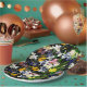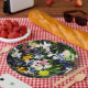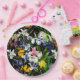 Viktorianische Iris-Blume auf schwarzem Muster Pappteller