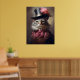 Dieses Poster zeigt ein Portrait einer langhaarigen Katze, die in Viktorianischer Zeit gekleidet ist. Die Katze trägt einen dunklen Top-Hut mit einer dekorativen Band und einer rosa Blume. Die Katze ist um den Hals herum mit einem gekräuselten weißen Kragen und einem großen rosa Bogen versehen, der zu ihrer Weste passt, und dem inneren Futter ihres verzierten, dunklen Mantels mit goldenen Knöpfen. Der direkte Blick der Katze vermittelt Intelligenz und Neugier. Der Hintergrund ist gedämpft, mit sanften Pinselstrichen, die den Eindruck einer klassischen Porträtinszenierung vermitteln, wobei die Aufmerksamkeit auf die fein gerenderten Details der Katzenkleidung und die realistische Textur des Fells gelegt wird.