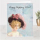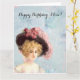 Viktorianische Lady in Federhut mit rosa Rosen Karte