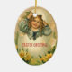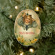 Dieses Viktorianische Bild hat ein hübsches junges Mädchen, das aus einem Ostereier hervorgeht, das Set in einem Garten voller Narzissen ist.