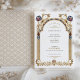 Treten Sie ein in die Pracht vergangener Jahre mit unserer Viktorianischen Elegance Wedding Save the Date Invitation. Die Vorderseite dieses exquisiten Stückes zeigt einen goldenen Rahmen mit einer Reihe von Blüten in tiefburgund, Mitternachtsblau und Rose-Rosa-Farbtupfern, das ganze Set mit einem cremigen Pergament-Hintergrund. Touchs verzierter goldener Scrollarbeiten, inspiriert durch die aufwändige Ästhetik der Viktorianischen Ära, fügen dieser Ankündigung einen regulären Flair hinzu. Auf der anderen Seite setzt die Einladung ihre Hommage an klassische Eleganz mit einem nahtlosen Muster von gelben Fleurs-de-lis fort und gibt Ihren Gästen einen Vorgeschmack auf die Opulenz und Romantik, die an Ihrem besonderen Tag erwartet werden. Diese Einladung ist der perfekte Auftakt zu einer Hochzeit, die in traditionellem Charme und raffiniertem Stil gehalten ist.