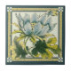 Dieses blaue Design der Blume stammt aus einem Viktorianischen Transferware-Fliesen aus dem späten 19. Jahrhundert. Farben der sanften Blues und eine Reihe von Grüntönen von fast chartreuse bis Jäger geben diesem ziegellosen Reiz.