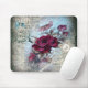 Liebliche, Vintage, rote Rose Florale auf Zeitungsdruck, mit einer Perlenfibel und Halskette aus Imitaten, Vogelkäfig mit aquamarinem Bogen, um einen luxuriösen, extravaganten, Vintagen Chic Stil für sie zu schaffen.