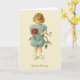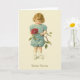 Vintag / Viktorianisch Geburtstagskarte. Adorable kleine Mädchen mit einer riesigen rote Rose! Geburtstag Grüße!