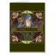 Ein Viktorianischer Weihnachtsmann - Der Weihnachtsmann trägt sein Spielzeug auf seinem Rücken und Engel schauen von der Seite her. Diese bezaubernde Santa Claus-Illustration basiert auf einer Postkarte aus dem späten 19. Jahrhundert. Die Illustration des Weihnachtsmannes hat einen blauen Mantel und einen langen, weißen Bart. Er ist vor einer altmodischen Stadt. Auf der Seite sind kleine Vintage Engel. St. Nick trägt seine große Tüte an Spielzeug, das den kleinen Jungs und Mädels weggegeben wird. Draußen ist es dunkel, und durch die Häuserfenster im Hintergrund ist ein Kerzenlicht gewartet, für den Weihnachtsmann, der um Mitternacht ankommt.