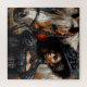 Im Puzzle befindet sich ein Gemälde einer Schwarzen in Viktorianischer Manier neben einem braunen und weißen Pferd. Afro-Viktorianische oder afro-gotische Ästhetik mit dunkelhäutigen Afrikanerin oder einer anderen afrikanischen Diaspora-Frau in eleganter Vintager Kleidung. Neutrale Farbpalette mit Braun, Cremes, Schwarz.
