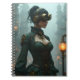 Eine auffallende Viktorianische Steampunkerin steht zuversichtlich, ihre Anwesenheit beherrscht Aufmerksamkeit. Sie ist in einem eleganten, smaragdgrünen Kleid gekleidet, mit Messingknöpfen und einem faszinierenden Spitzen-Trimm geschmückt. Der Körper ist eng korsetiert, betont ihre Silhouette, während der Rock sanft zum Boden fließt, sein leicht von Abenteuern abgebremst, unerzählt, was ihr einen Hauch von Raffinesse und ausgeklügelter Praxisnähe verleiht. Ihre markanteste Eigenschaft ist das Paar verzierter Messingbrillen, ihre Linsen getönt ein schwaches Grün, um ihre Kleidung. Die Brillen sind mit winzigen Gängen und Dials geschmückt, was darauf hindeutet, dass sie mehr sind als nur ein Modestatement.