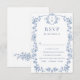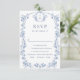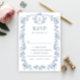 Stilvoll bearbeitbare, leicht zu bedienende Hochzeitsfeier Vorlagen, weitere Gegenstände (Einladungen, uAwg, Dankeschön-Karten, Schreibwaren & Dekor) mit dem gleichen Design sind im Laden erhältlich. Für weitere Anpassungen klicken Sie bitte auf "Diese Vorlage personalisieren", dann auf "Bearbeiten mit dem Entwurfswerkzeug". Elegante Vintage Blue French Garden Blumenkarte RSVP Card.