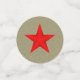 Dieser Tisch Konfetti hat große Kreise mit einem kleinen blond Viktorianischen Engel in einem roten Kap mit einem kleinen Weihnachtsbaum auf einem bräunlichen Hintergrund mit weißen Flecken. Die mittleren Kreise sind rot mit frohen Weihnachten in Gold. Die kleinen Kreise haben einen hellen roten Stern auf hellbraunem Hintergrund.