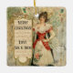 Dieses Viktorianische Design zeigt eine Märchenfrau in Rot, Rosa und Weiß, die Noten aufhält, um sie den Beobachtern anzukündigen.