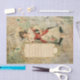 Dieses Viktorianische Design zeigt eine Märchenfrau in Rot, Rosa und Weiß, die Noten aufhält, um sie den Beobachtern anzukündigen.