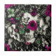 Viktorianischer gotischer Spitzeschädel mit Mohnblumen und Schmetterlingen in der Schwarzer, rosa und Elfenbeinfarbpalette.
