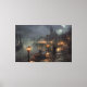 Viktorianischer Hafen bei Nacht: Fischerdorf Leinwanddruck