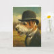 Diese Karte ist illustriert mit einem smarten Jack Russell Terrier in einem Bowlerhut.