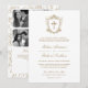 Erleben Sie Ihre Gäste mit diesem eleganten katholischen Hochzeitsempfang mit einem schönen viktorianischen Wappen mit aufwändigen Details und QR-Code für Online-UAWG. Fügen Sie einfach Ihre Veranstaltungsdetails zu dieser benutzerfreundlichen Vorlage hinzu und schmücken Sie diese Karte mit Ihren bevorzugten Fotos, um sie zu einer einmaligen Einladung zu machen.