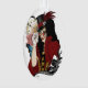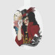 Eine schwarzhaarige Frau mit viktorianischem, roten Steampunkattrappe, schwarzer Stammektopus, Umhang, blauer Schmetterling und rosa Rosa