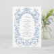 Viktorianischer Verzierter Blumendusty Blue QR Cod Einladung