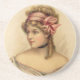 Sandstein Untersetzer mit einer schönen Viktorianischen Frau mit einem blass rosa Bug im Haar.