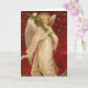 Dieses Vintage Design besticht durch einen wunderschönen blonden Engel mit einem goldenen Hal, umgeben von goldenen Sternen auf einem weihnachtroten Hintergrund. Viktorianisch im Stil, bietet diese elegante Urlaubskarte einen großzügigen roten Text im Inneren, der für die perfekte Botschaft an Ihre Freunde und Familie personalisiert sein kann.